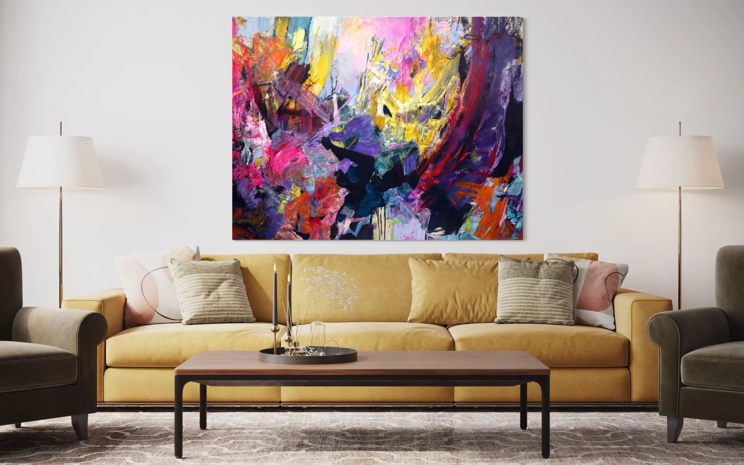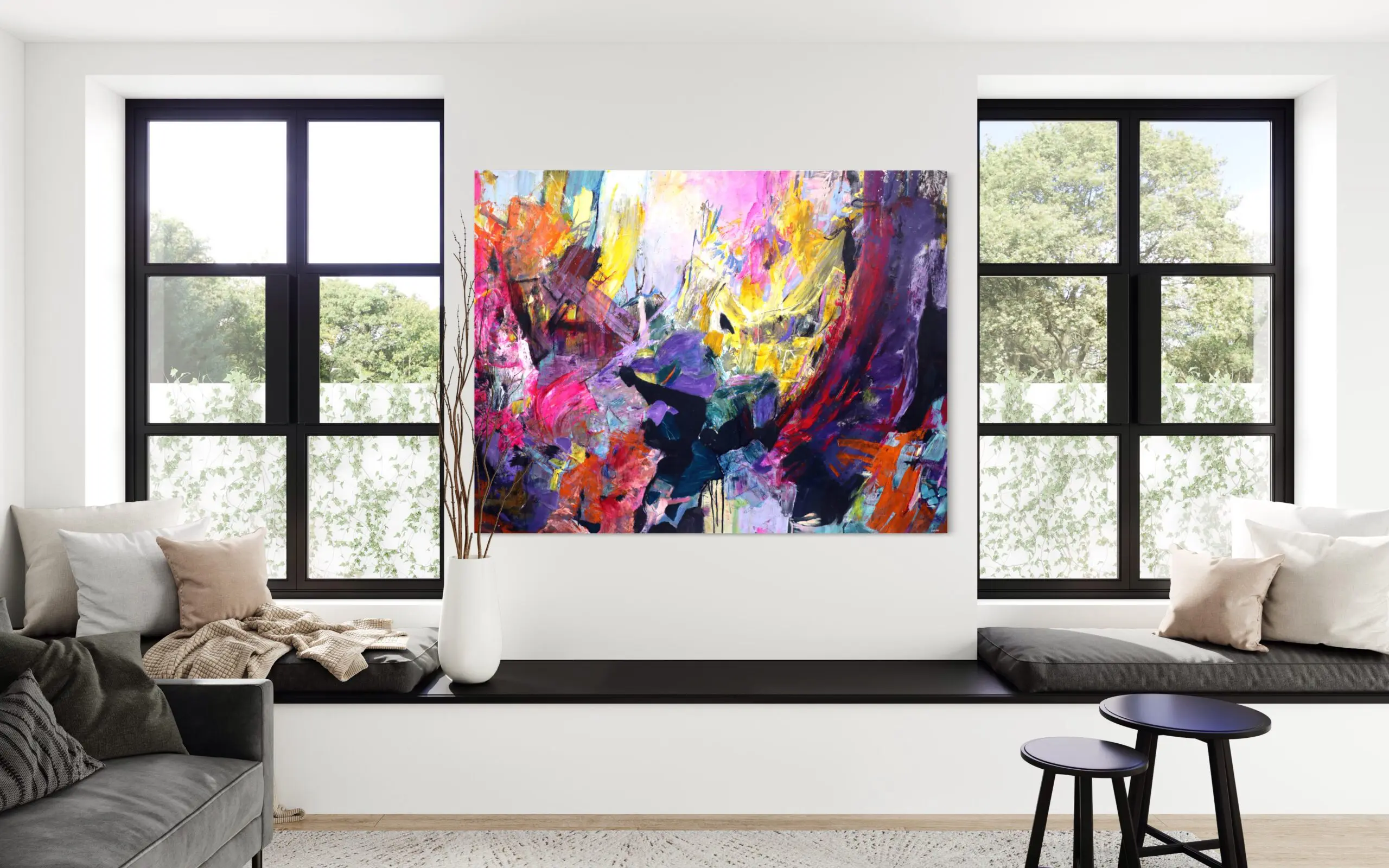 In this compelling work by Christy Hopkins, one encounters a contemporary reinterpretation of abstract expressionism, offering a refreshing perspective on a genre traditionally associated with white male dominance.