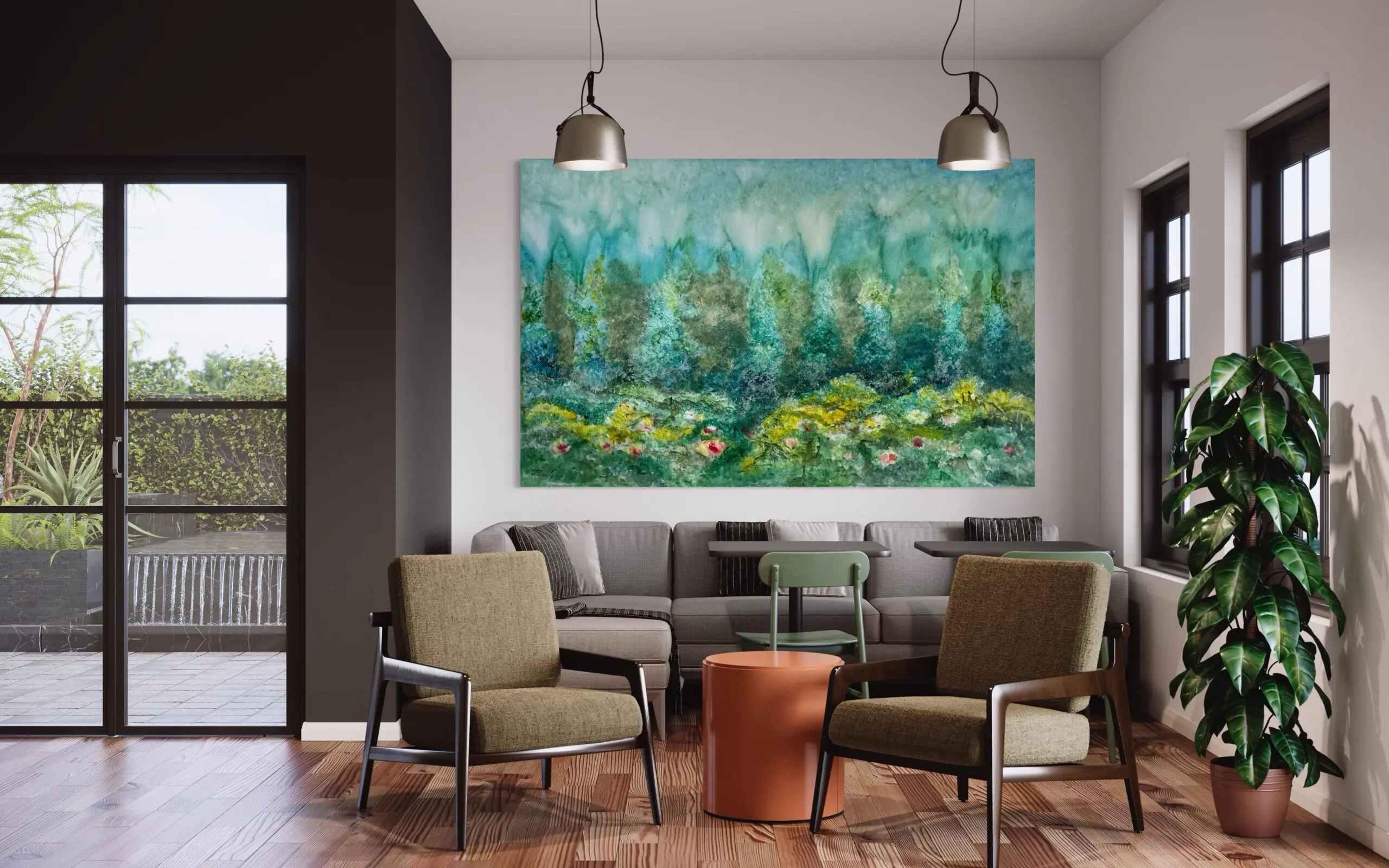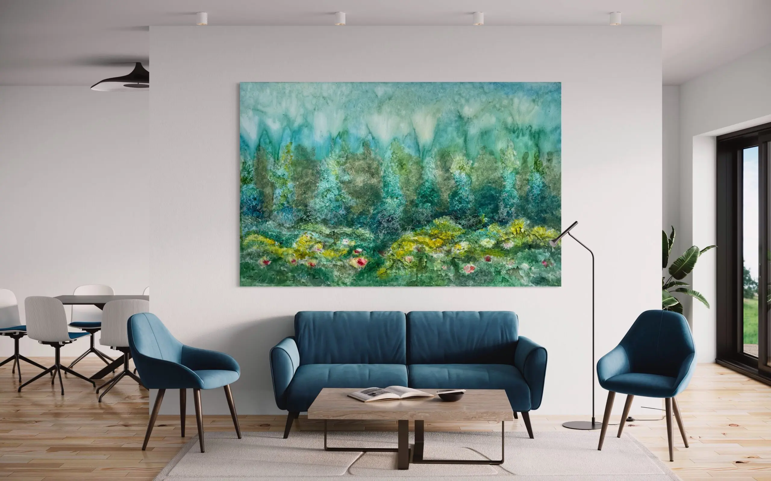 The use of soft tones and impressionistic brushstrokes lends a sense of ethereal beauty to the overall composition. The artist has skillfully created a sense of distance, with the background featuring soft and hazy brushwork, giving the impression of vastness and mystery. The infusion of blues adds a touch of tranquility and calmness to the scene, further enhancing the enchanting ambiance.