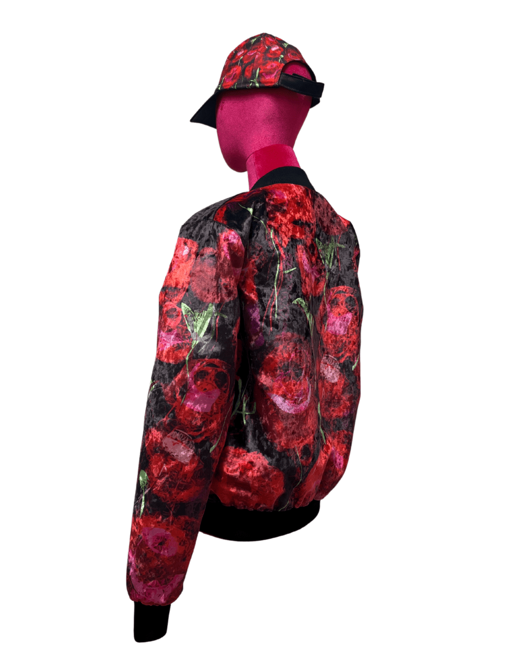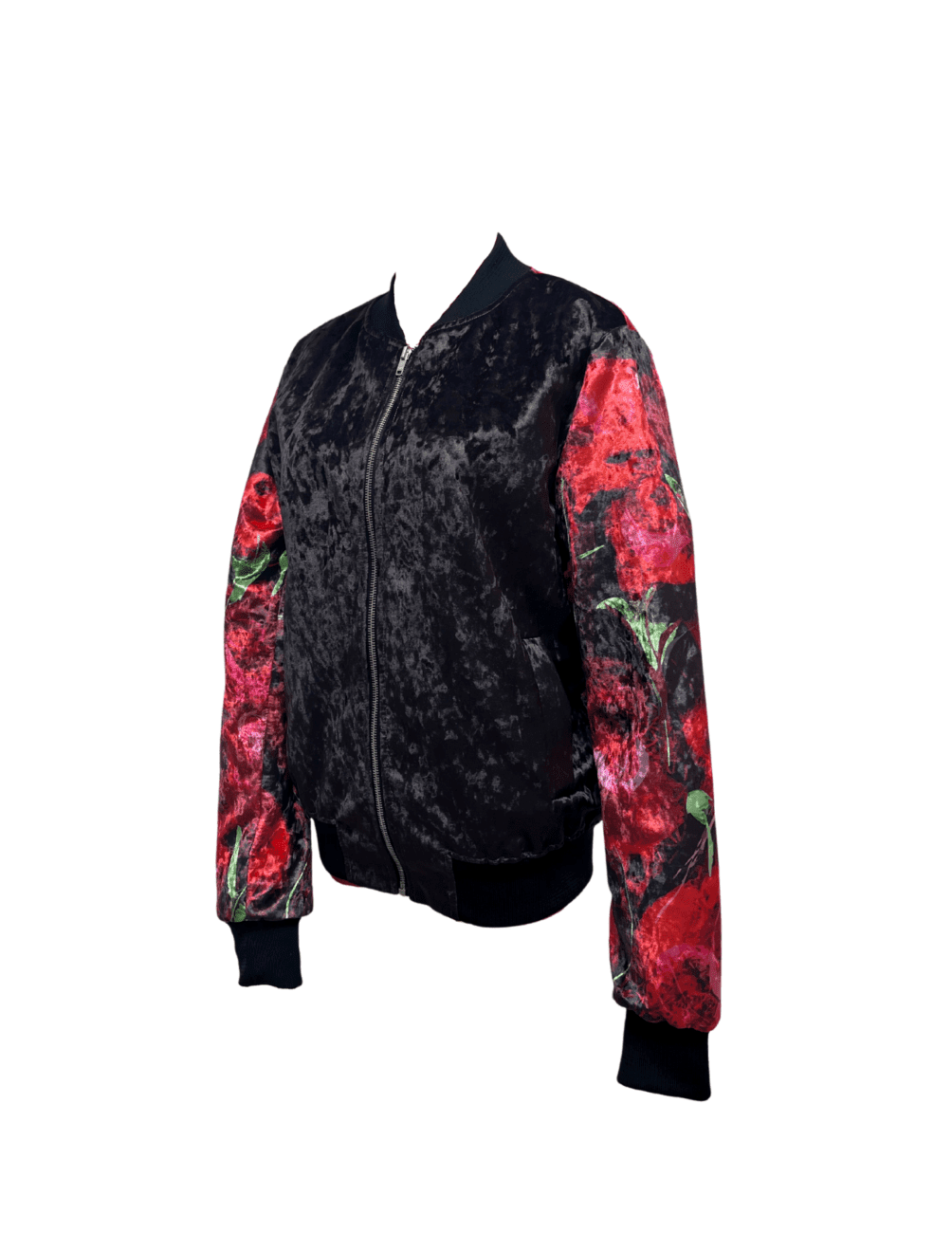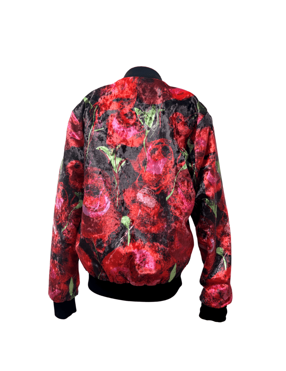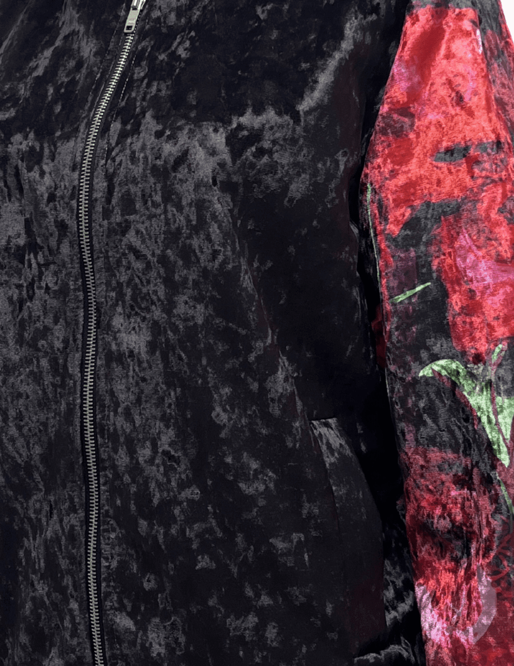 Reversible jacket with roses artwork by Haleh Mashian, for sale in Los Angeles at Mash Gallery.