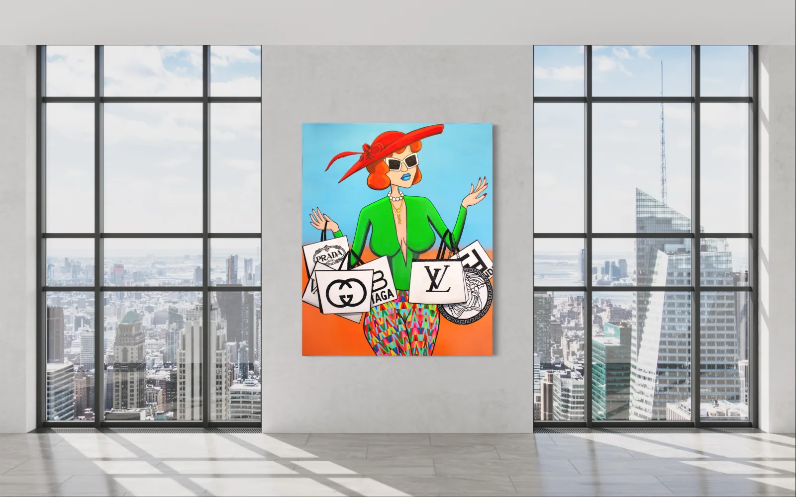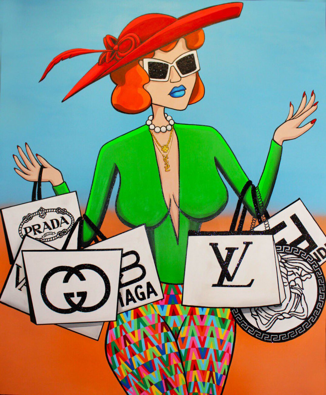 The artist’s use of vibrant and visually striking elements reflects the allure and seduction of the consumerist mindset. The woman’s disregard for financial constraints, as implied by her willingness to spend her rent money on fashion items, serves as a stark reminder of the often detrimental consequences of unchecked consumerism. It is a portrayal of the never-ending pursuit of material satisfaction that can lead individuals down a path of financial instability and emotional dissatisfaction.