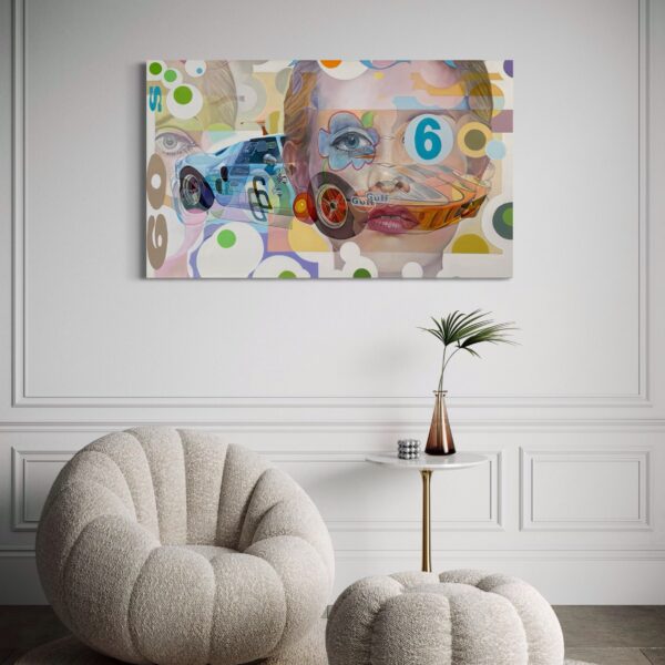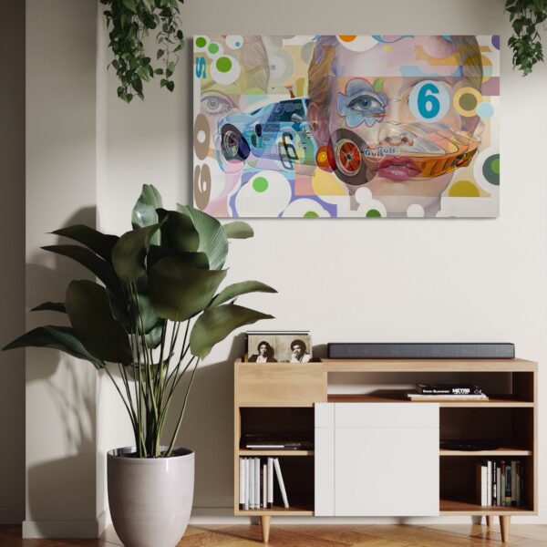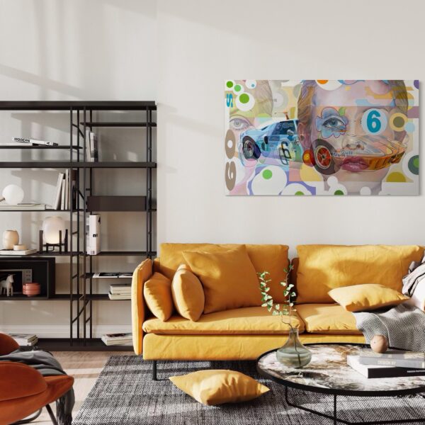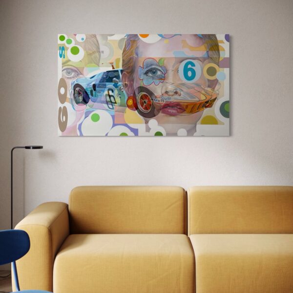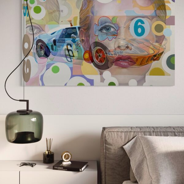 “Sixties” is perfect for collectors of pop art, automotive-inspired paintings, and vibrant large-scale acrylic works. It celebrates the intersection of sport, culture, and design, making it equally at home in contemporary interiors, retro-inspired spaces, or collections that honor the spirit of the 1960s.