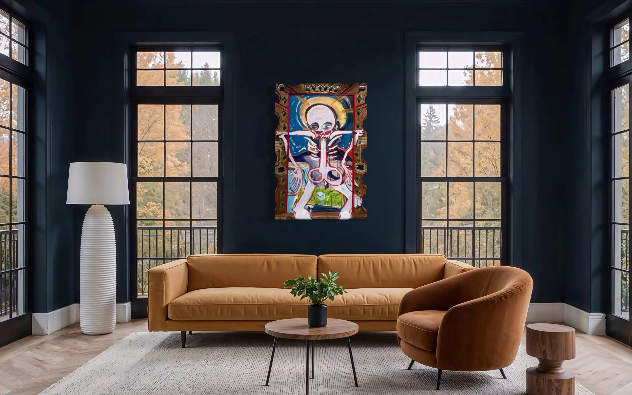 With bold colors and an expressive style, this thought-provoking piece challenges us to reflect on the complexities of existence, making it a must-have for those who appreciate art that delves into the human condition.