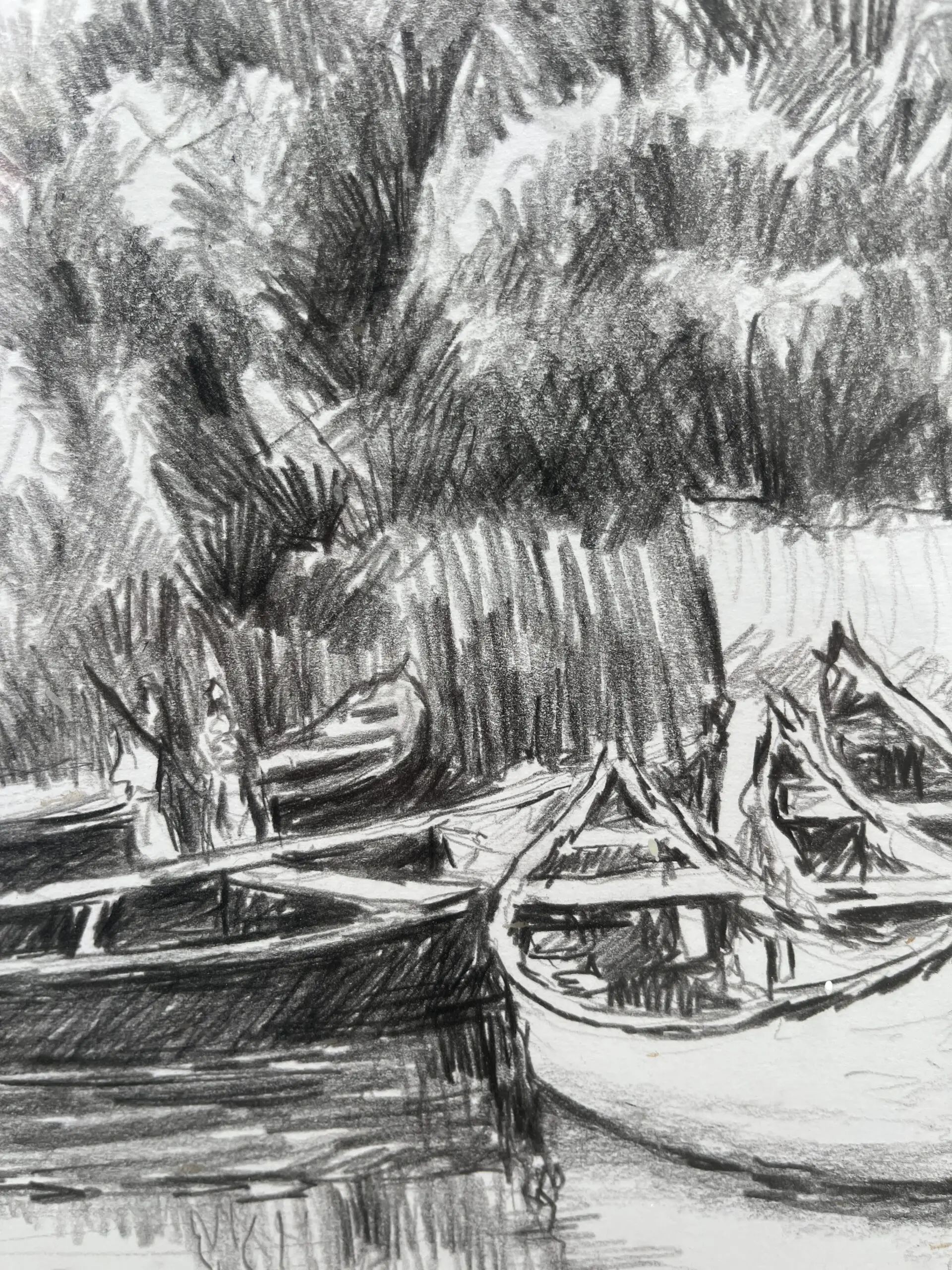 “Stillness 1” captures the essence of nature’s beauty with its meticulously crafted pencil strokes, inviting viewers to appreciate the stillness and serenity that can be found within the simplicity of a peaceful landscape.