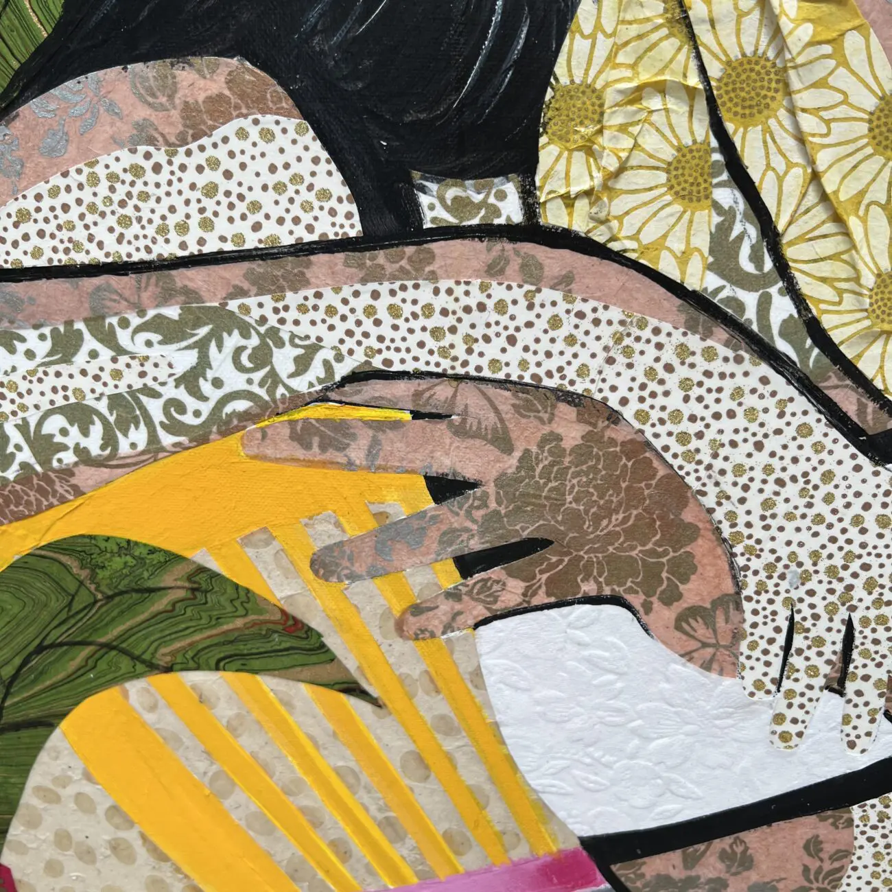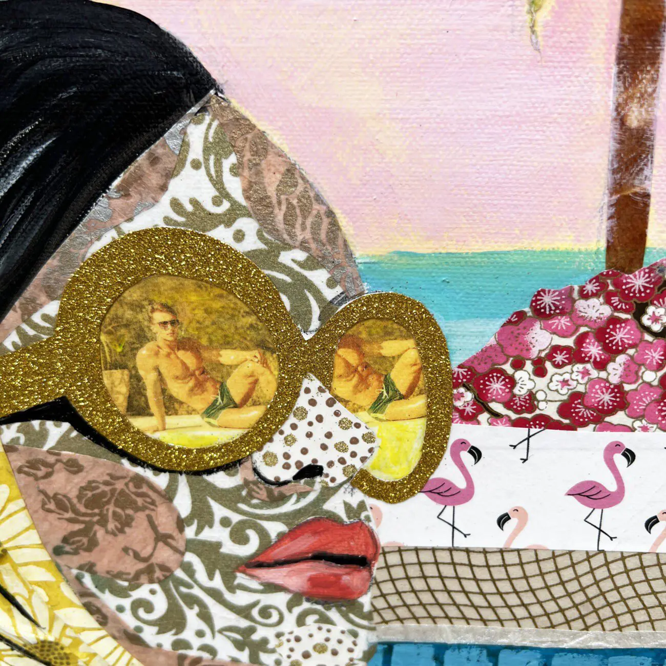 Molina’s work is influenced by her prior career as an advertising art director–but now her goal now is to sell perspective rather than product. In this series, Cabell reclaims classic femininity as multi-faceted, giving voice and texture to lost imagery. Her art pushes for colorful expansion of a “woman’s place” while it explores the complex dynamic of a woman’s emotions, celebrating the bygone glamour of mid-century fashion and deconstructing its patriarchal underpinnings. Cabell’s painting/collages read as meditations on the female experience and the pursuit for sovereignty in a historically male dominated culture.