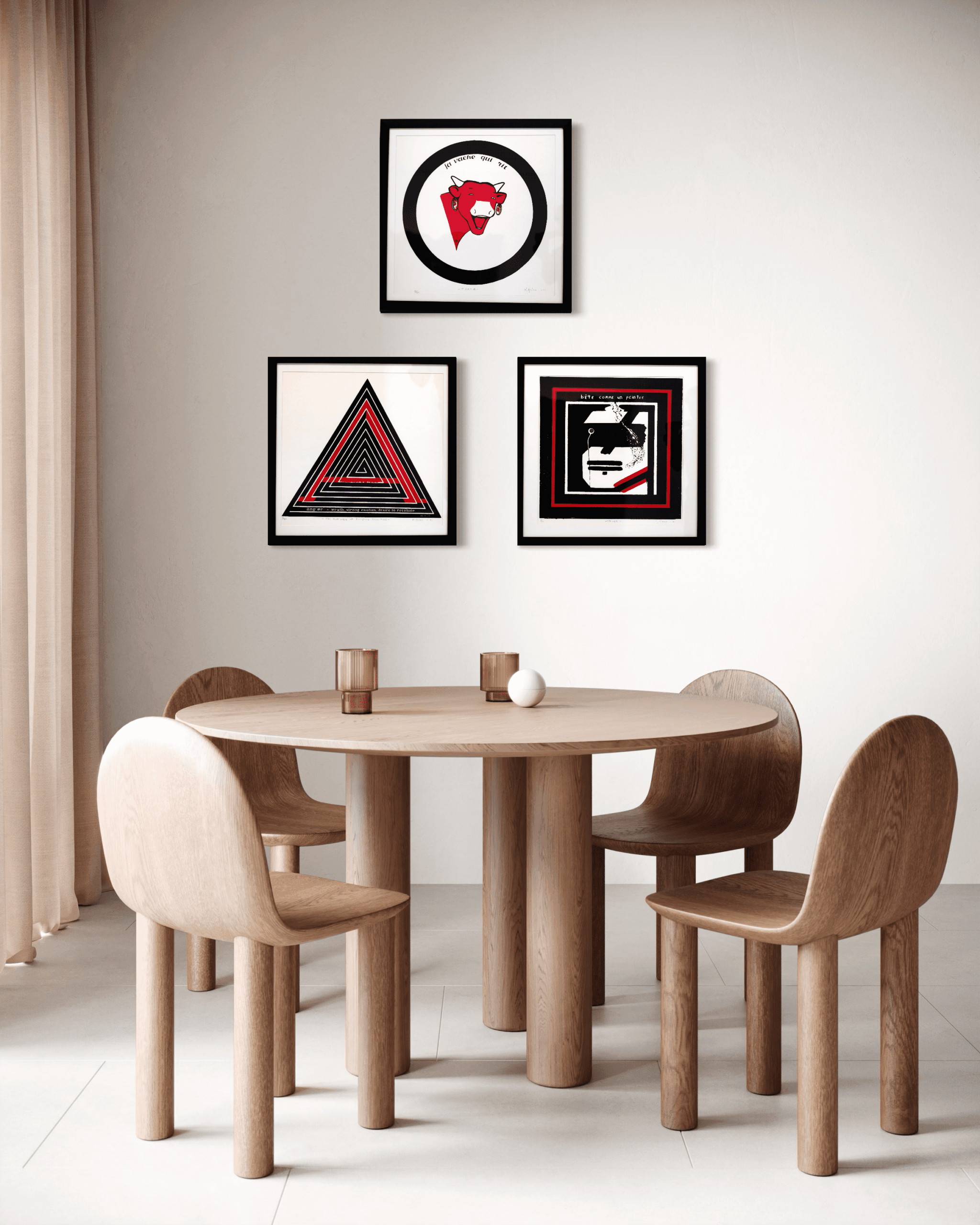 Originating from the visual language of La Vache qui rit, this hand-made silkscreen reflects the intersection of modern art, design, and commercial imagery. The simplified red cow and circular framing draw from Modernist poster design and early Pop sensibilities, balancing humor, clarity, and iconic presence.