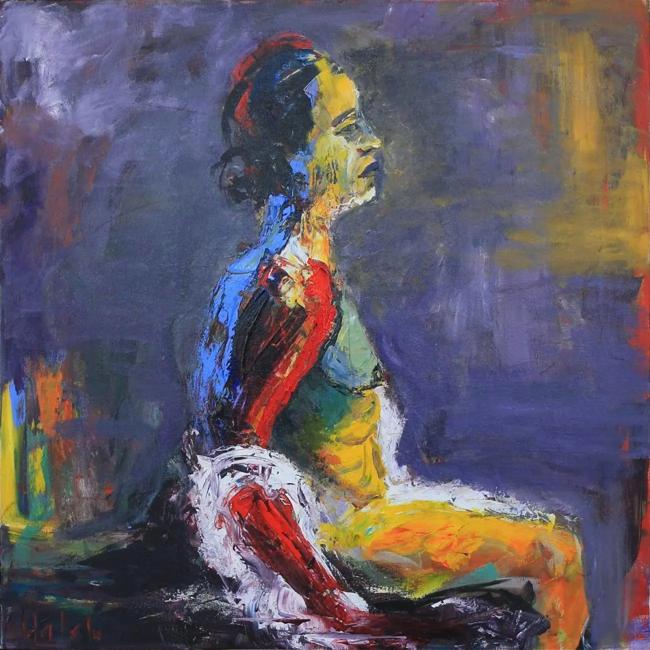 “The Far Distance” by Haleh Mashian is a vivid and deeply introspective reflection on time, resilience, and the richness of experience. The seated figure of an older woman exudes quiet contemplation, her posture suggesting the weight of years lived, yet her presence radiates an undeniable energy.