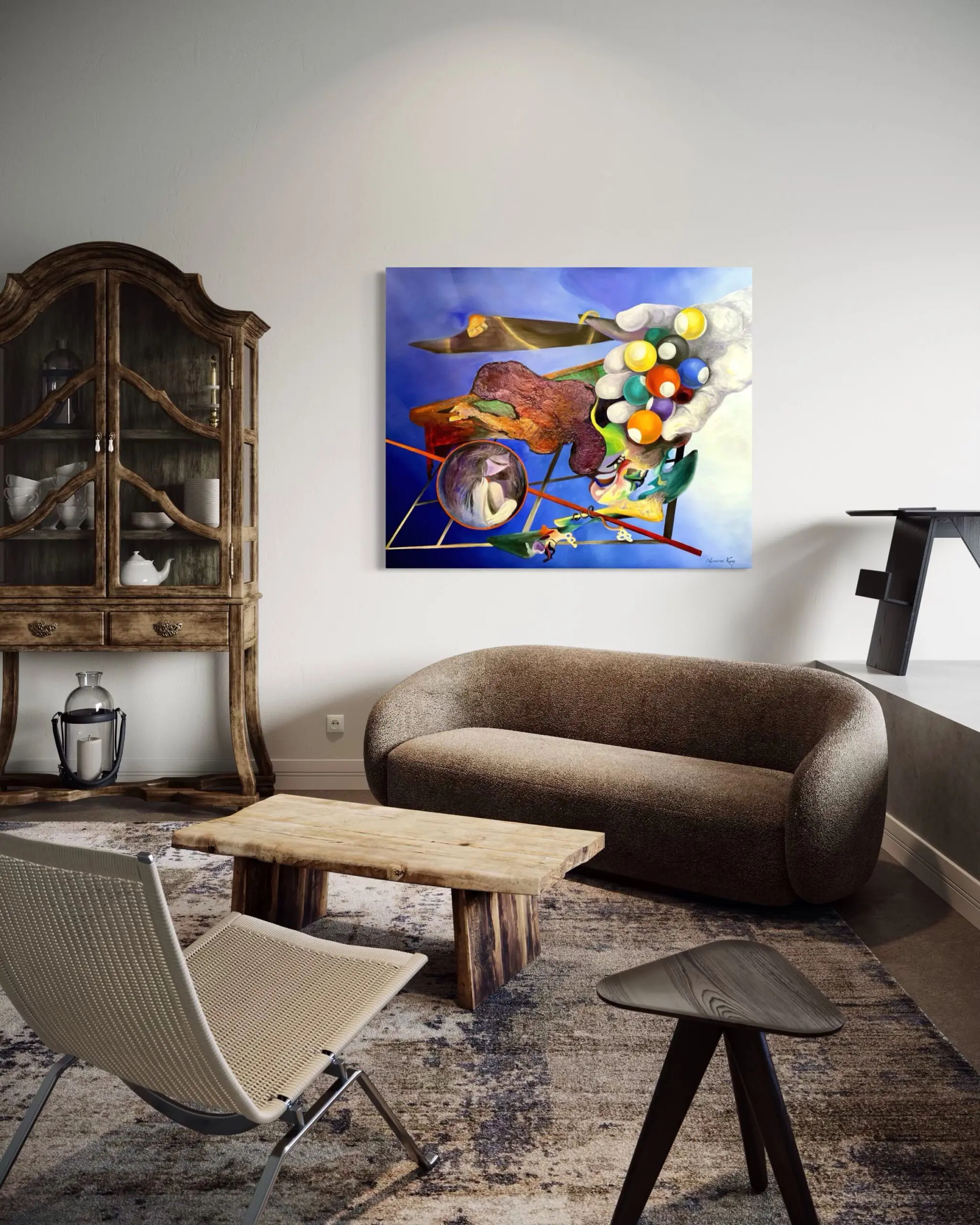 Through Krum’s masterful use of surrealist abstraction, vivid color palettes, and symbolic distortion, “The Gambler” transcends mere artistic representation, evolving into a visual allegory for chance, consequence, and the intricate dance between destiny and self-determination. The painting’s compelling composition and rich thematic layers make it a powerful statement piece in contemporary surrealist art, resonating with collectors, art enthusiasts, and those drawn to the philosophy of risk and reward.