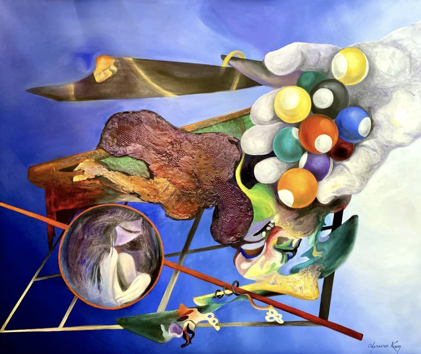 In “The Gambler,” Odysseus Krum crafts a mesmerizing surrealist painting that blurs the boundaries between reality, illusion, and chance. This dynamic composition immerses the viewer in a symbolic exploration of risk, strategy, and the psychological tension between control and chaos, inviting interpretations that resonate with both the art world and philosophical thought.