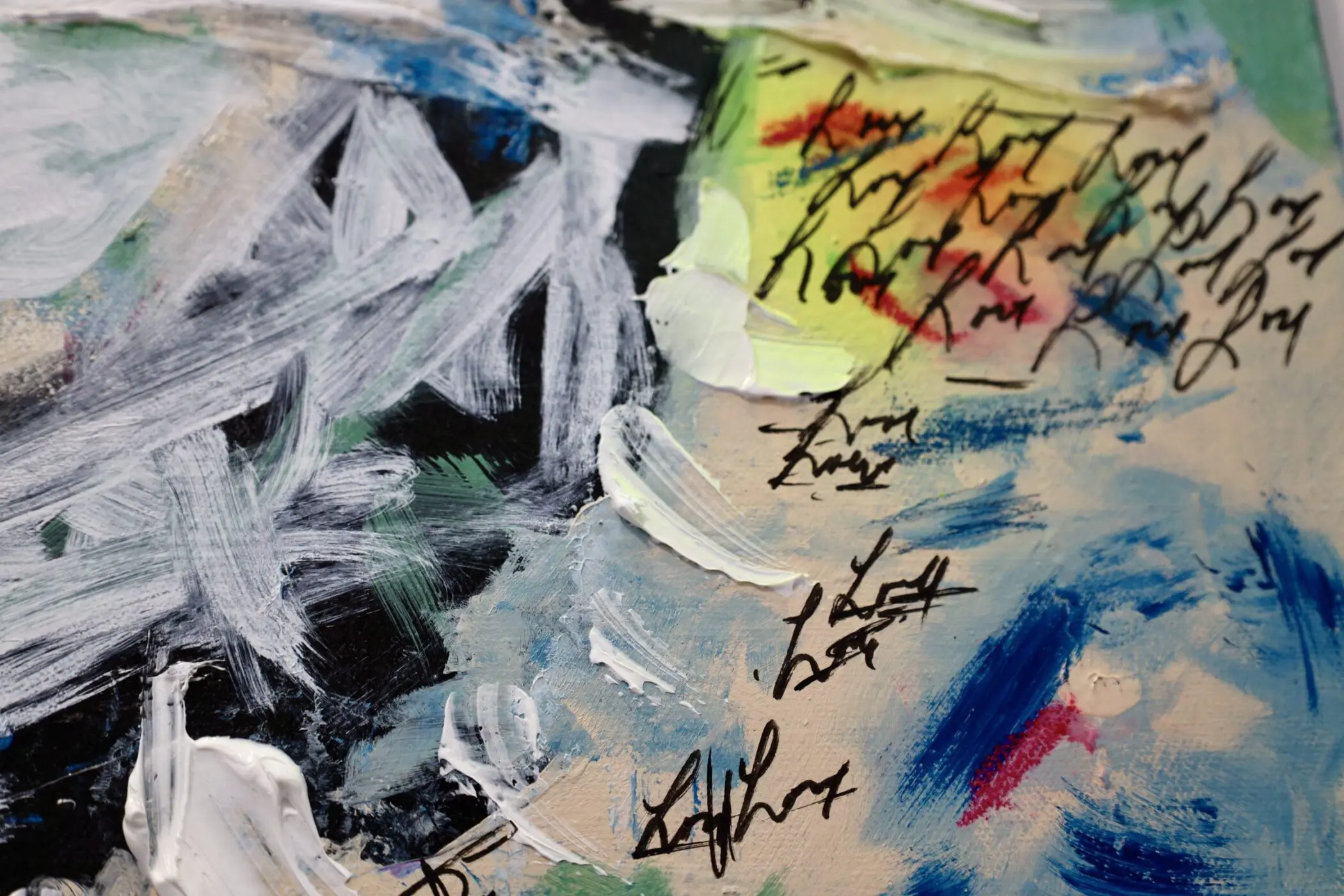 When asked about the text included, the artist stated, “I added the word love over both of these paintings several times because I want people to spread love as the world needs it.”