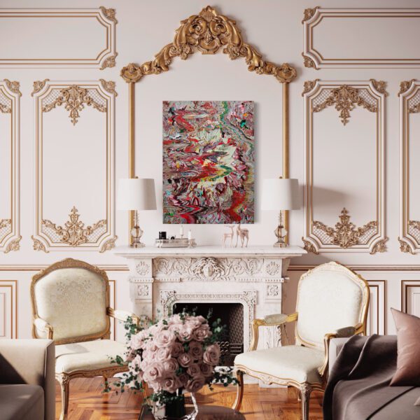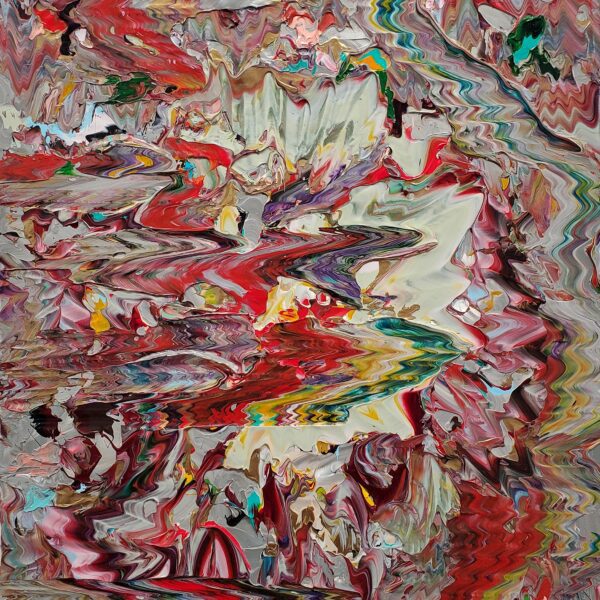 This work examines the relationship between complementary reds and greens, with strategic interventions of purple, yellow, and pink accents. The reds are carefully balanced within the composition, allowing for a harmonious integration with the surrounding colors. Warm gray tones provide a restrained backdrop, enabling the more vibrant hues to stand out with clarity and intensity. The interplay between muted and saturated colors establishes a dynamic tension, where the presence of one color enhances the perception of the others, creating a nuanced visual dialogue.