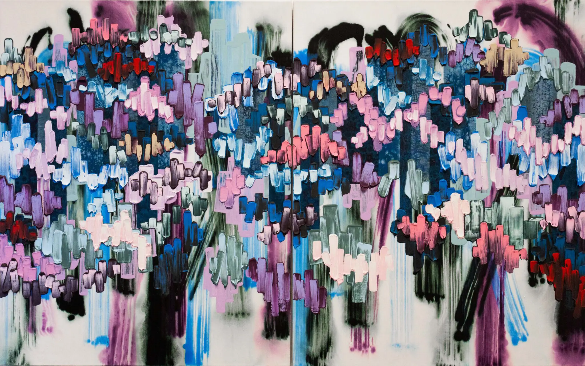 Presented as part of Mash Gallery’s group exhibition Rhythmic Contours, the painting expands the exhibition’s investigation of line and rhythm into a contemplative register. Here, rhythm emerges through the steady layering of gesture and color. The painting invites sustained viewing, revealing new relationships as the eye adjusts to its internal cadence.