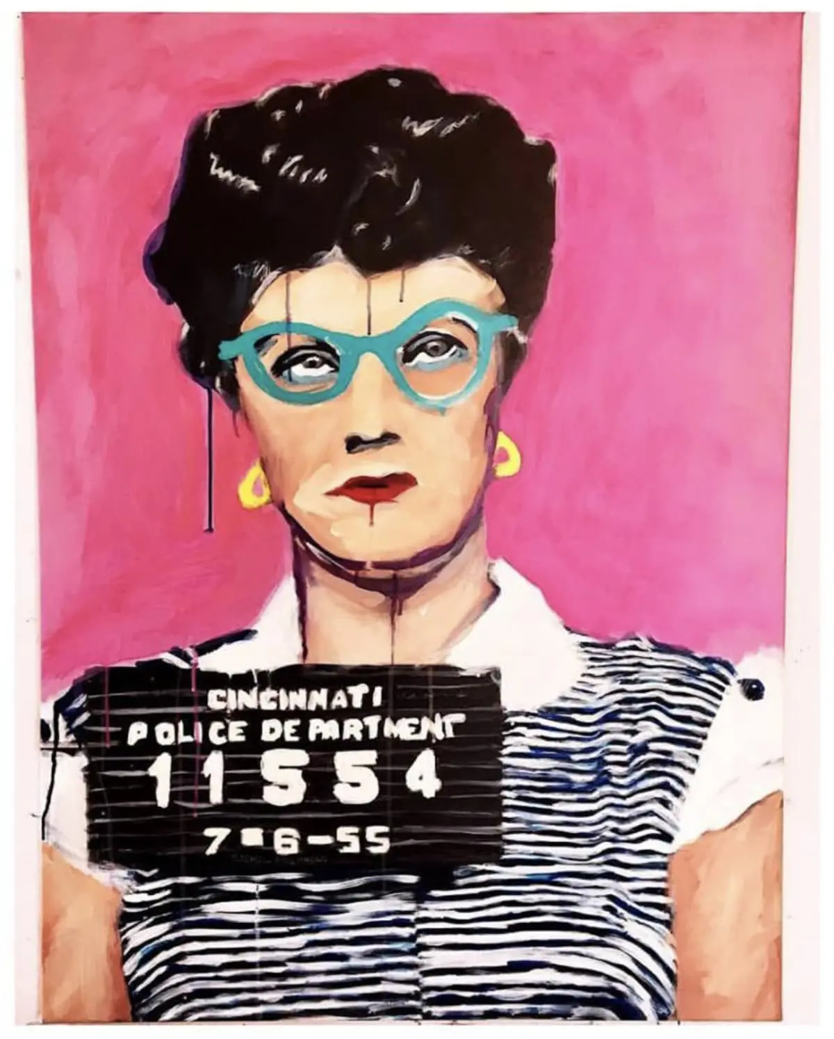 “Velma”, from O’Donnell’s Bad Girls series, is inspired by real mugshots from the 1940-1960s. The subjects of these pieces were often used as cautionary tales and cultural ‘boogeymen’, which she finds truly fascinating.