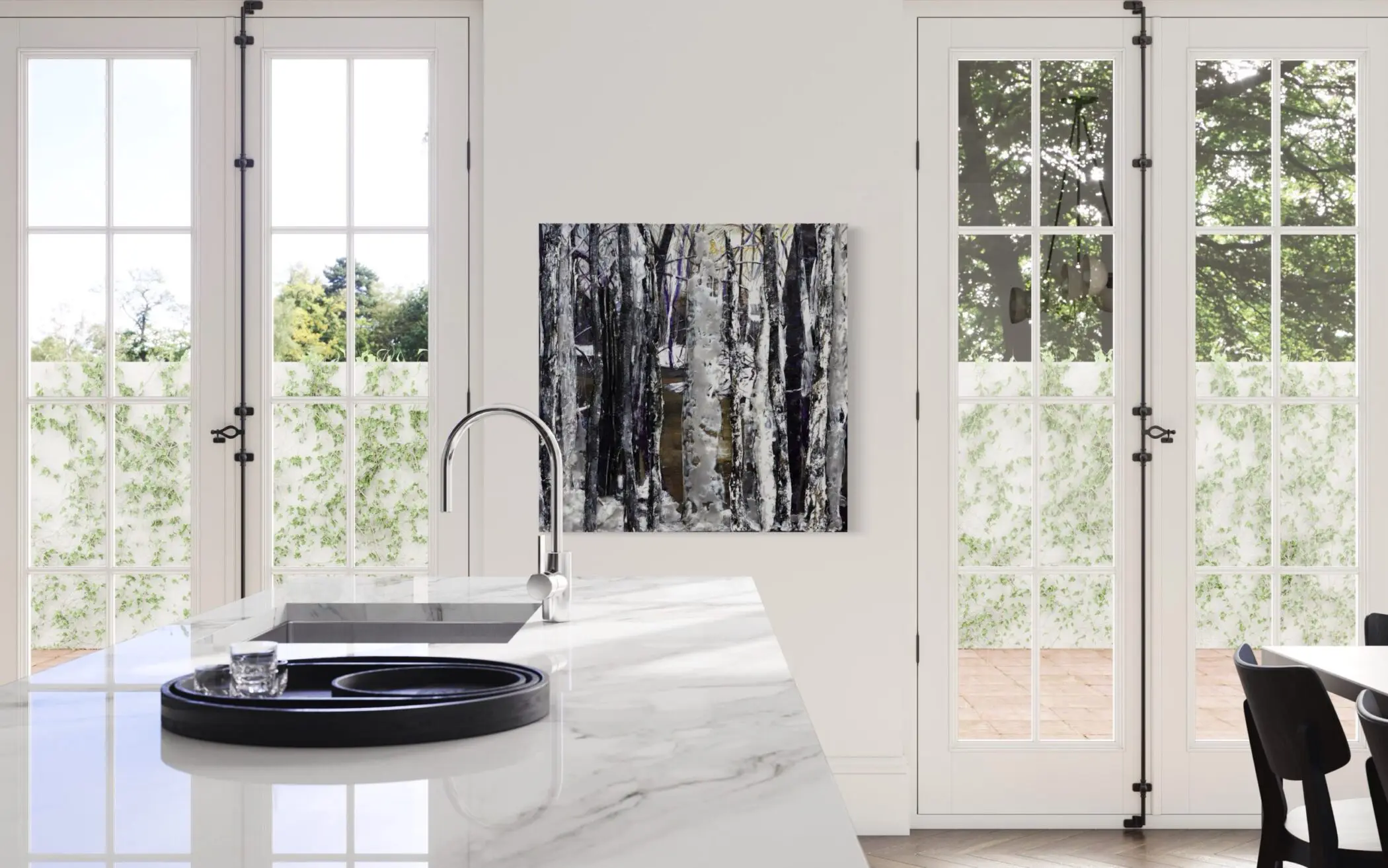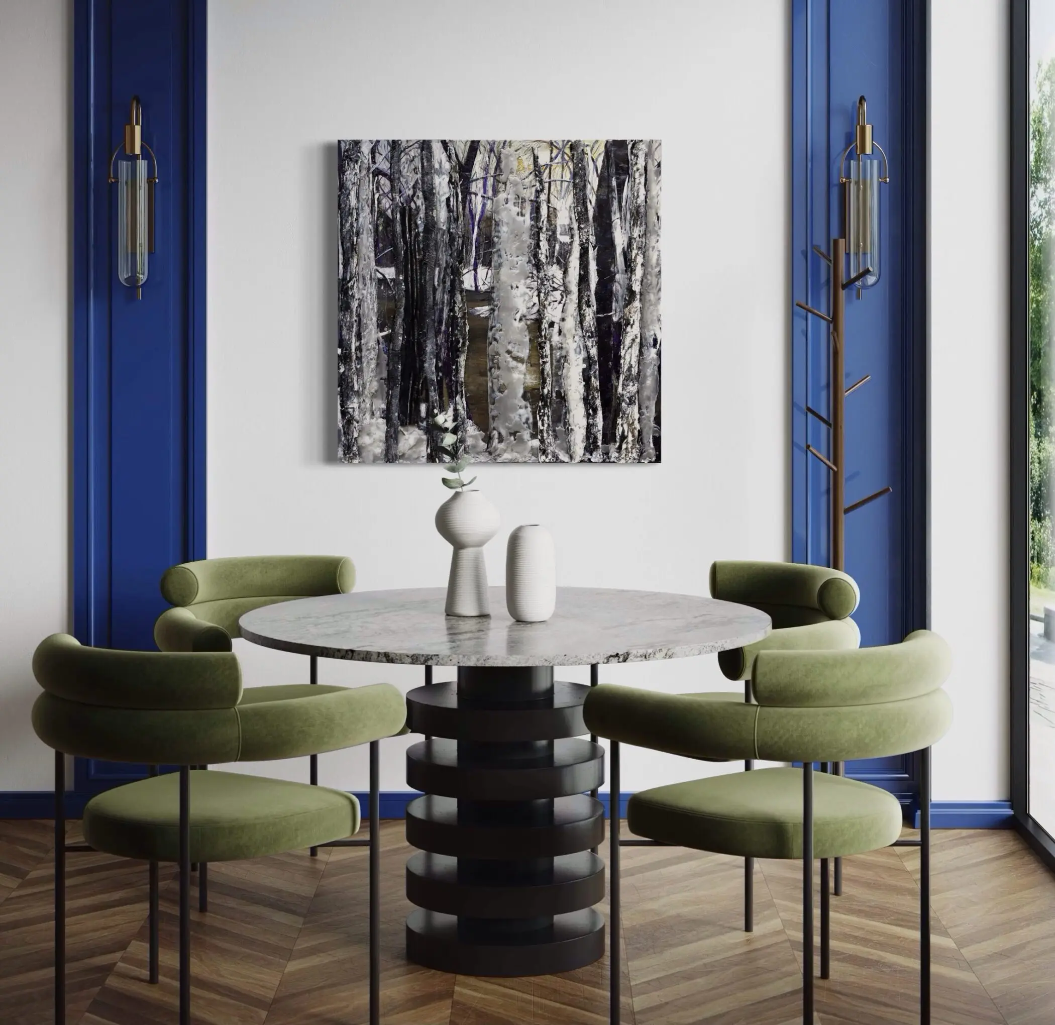 “Whispers of Winter” blends contemporary abstraction with the timeless allure of seasonal change. The painting offers a contemplative moment, inviting a connection to the enduring beauty of nature in its quietest form, making it a serene addition for interior designers and collectors.