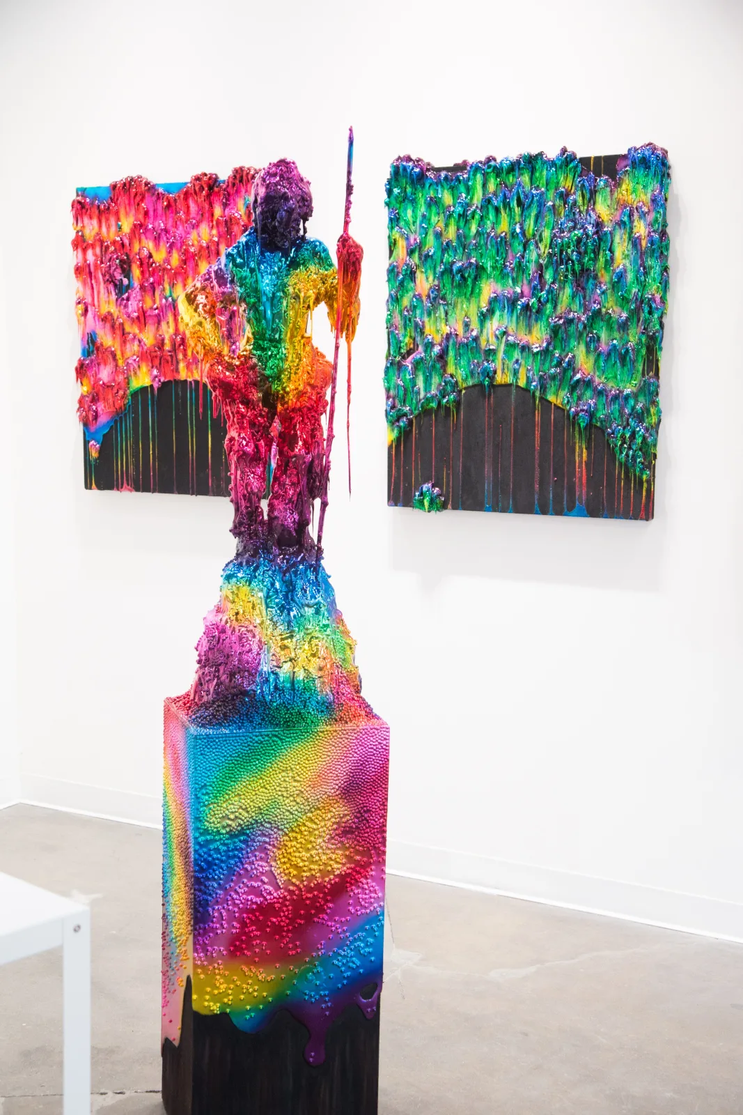 This show is all about an “over the top” reflection of the complexity of concepts orchestrated through a variety of mediums used by the exhibiting artists. À GOGO emphasizes both the processes of making art and the final product that explodes into visual ecstasy. MASH Gallery’s goal is to elevate all the human senses through this high-energy exhibition experience.