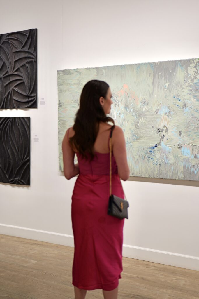 The exhibition highlights the principles of design, such as color palette, scale, balance, and composition. This symbiotic relationship elevates artwork, evoking the desired ambiance within an interior space.
