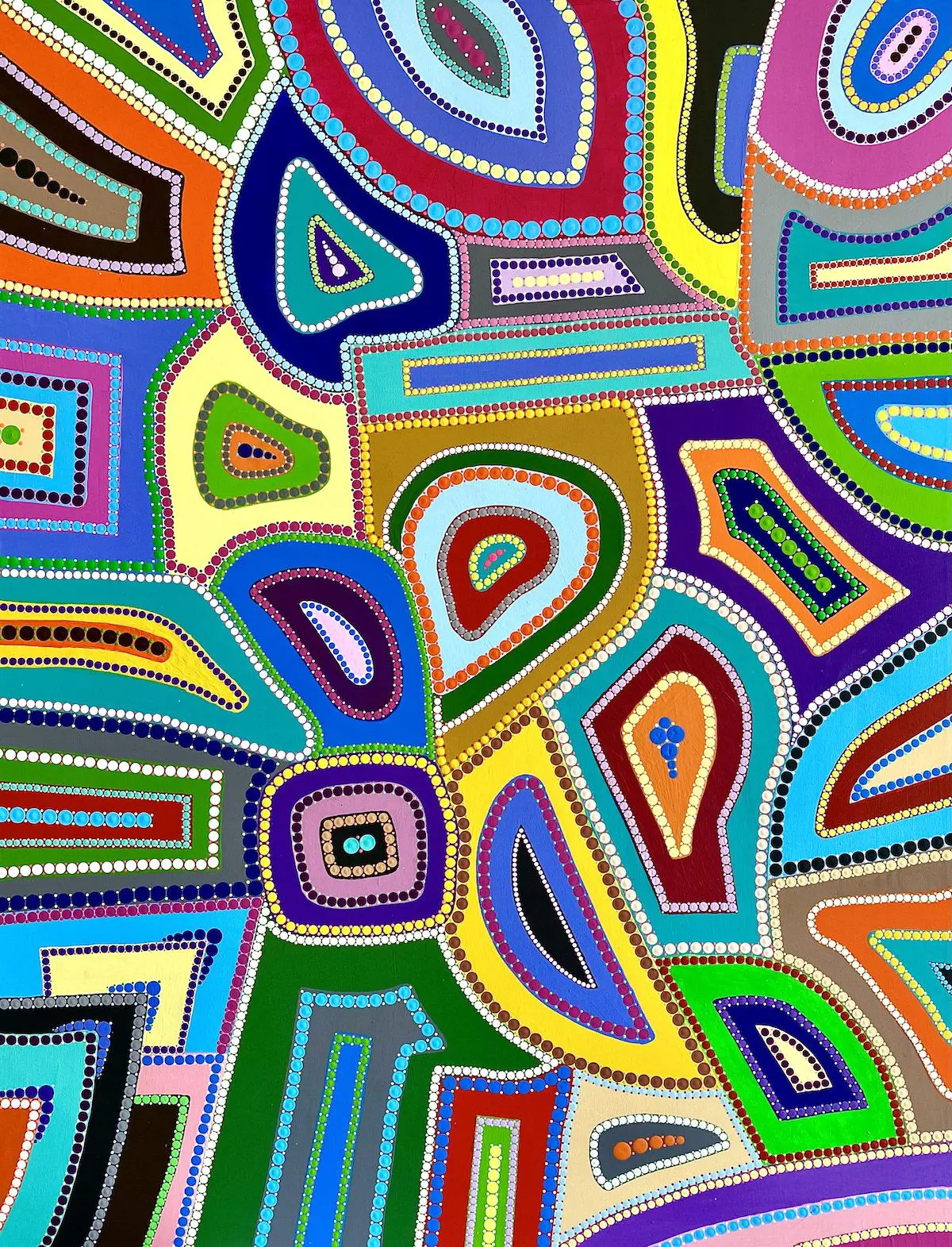 Ernesto has been dedicating himself to his art for some years.During the pandemic, he focused on honing his art and discovered new paths of expression.Guevara has an affinity for working his paintings very precisely; by using dots in various sizes and many colors, he creates his graphic work of open and unlimited fantasy, sometimes printing a mandala and other times a flight over various figures in space.Dots and points that are repeated ad infinitum that together invite you to feel free and break chains. The work of geometric spaces consults a labyrinth of thoughts, ordered in their abstraction. Guevara has participated in several group exhibitions in Mexico City. His work is found in private collections in Mexico, USA, El Salvador, Germany.