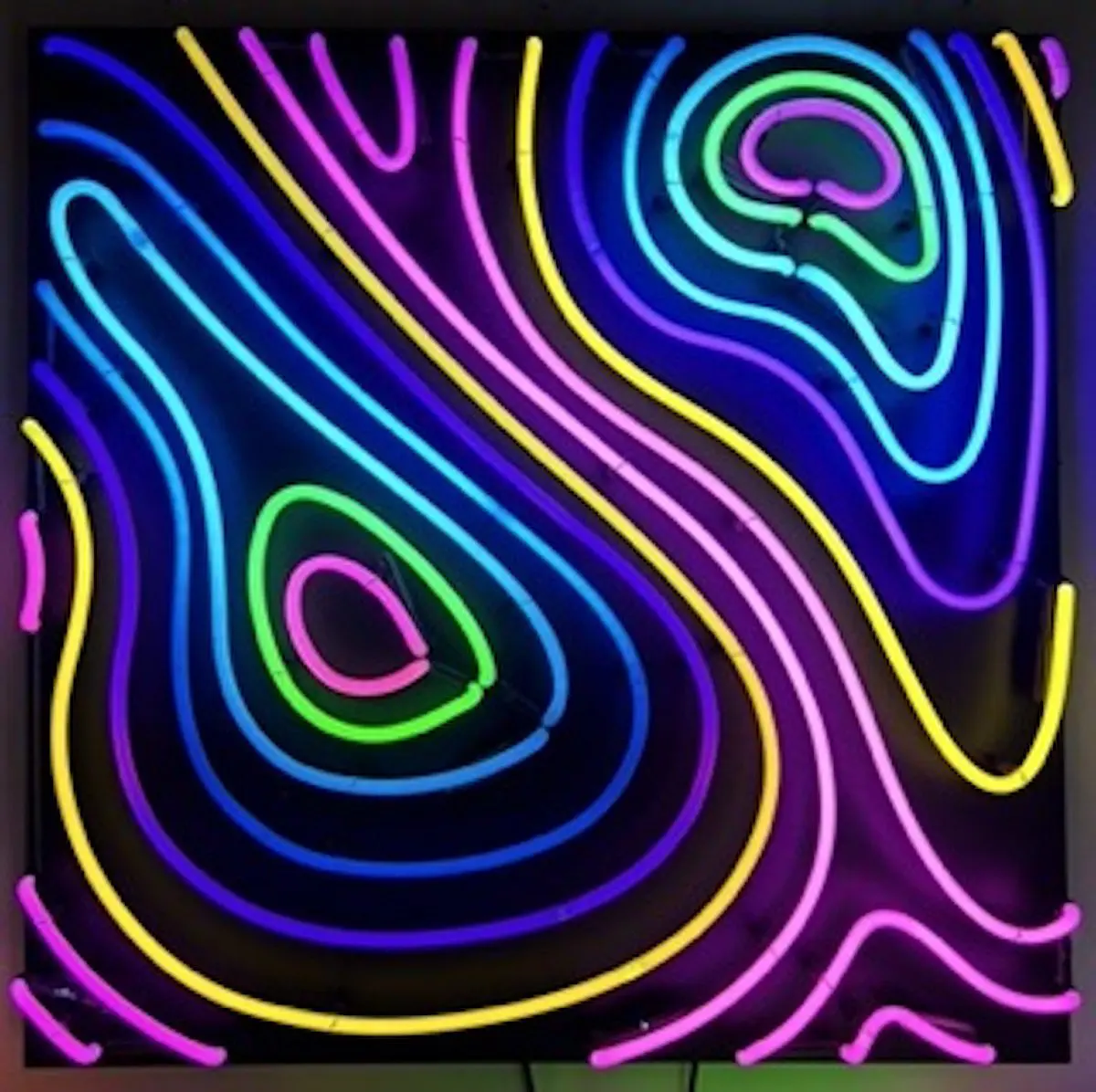 Schulte is an American artist, also known as “The Neon Queen”, who is best known for her work in expressive neon sculpture. Schulte started bending neon in the early 1980s, creating custom neon signs and neon prop rentals to the entertainment industry under her Los Angeles-based neon studio, Nights of Neon.