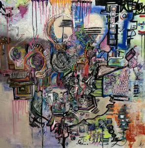 With meticulous attention, layers of paint are carefully built up over time, resulting in a rich tapestry of textures and overlapping patterns. These intricate details contribute to the depth and complexity of her work, offering viewers a captivating exploration of form and substance. The layer-making process emerges as an indispensable element, for it breathes new life into each piece, guiding its evolution and propelling it in unforeseen directions. Through her unwavering commitment to self-expression, honed expertise, vivid imagination, and sheer joy, Christy Hopkin’s art transcends traditional boundaries, inviting viewers to embark on a transformative journey that celebrates the boundless possibilities of artistic creation.