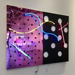 Curated by Haleh Mashian, LUMEN presents the viewer with a multi-sensory showcase that is both ethereal and atmospheric, yet geometric and analytic. Work ranges from the two-dimensional, painted canvases, to three-dimensional works composed of alternative materials, plastics, glass, and metal. “The Neon Queen,” Lisa Schulte, presents a site-specific installation, “Color Fields,” a three-dimensional greenhouse with abstract neon flowers, tools, and icons. Lisa shares, “When one enters the greenhouse, my intention is to convey a feeling of peace and serenity and enchantment.”