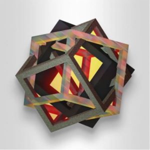 Serbian light artist, Marko Gavrilovic, presents an intricate series of suspended plexiglass sculptures in an ongoing series titled, “Sharks.” Illuminated multi-colored shapes intertwine with light, conversely meshing Geometric Abstraction with Light Art. Marko shares, “I explore the possibilities in which nature and built environments will coexist…” The theme of color as illusion continues with Angela Johal’s geometric pattern paintings, “I paint with striped diagonal or circular bands of color which forces illusionistic spaces…” Additionally, Saskatchewan artist Laura Payne presents her “Interpolation” series made of shaped wood panels seemingly appearing three dimensional while the surface reflects, refracts and disperses light. Los Angeles artist, Aaron Axelrod melds as many mediums as possible in his work, “Painting, sculpture, photography, video art, projection mapping, experimental crystal art, mixed media neon light art…”