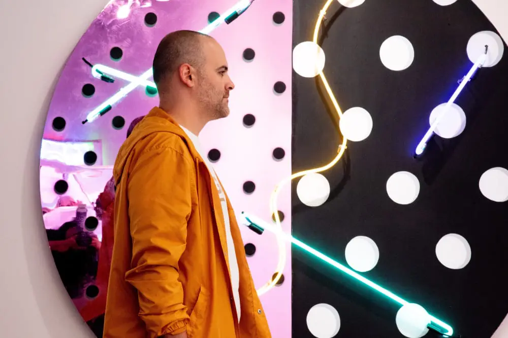 Los Angeles artist, Aaron Axelrod melds as many mediums as possible in his work, “Painting, sculpture, photography, video art, projection mapping, experimental crystal art, mixed media neon light art…”
