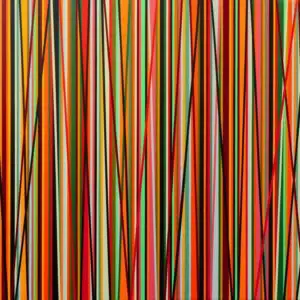 The theme of color as illusion continues with Angela Johal’s geometric pattern paintings, “I paint with striped diagonal or circular bands of color which forces illusionistic spaces…” Additionally, Saskatchewan artist Laura Payne presents her “Interpolation” series made of shaped wood panels seemingly appearing three dimensional while the surface reflects, refracts and disperses light.