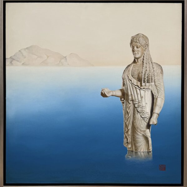 Will Binder turns toward antiquity and intimacy, seamlessly blending the realism of Greek marble and bronze statues with contemporary imagination. Works like Aphrodite, Kore, and Theseus revive mythological figures with lifelike precision, while Washing the Dishes grounds his practice in the intimate heroism of everyday life. In pieces like Sleeping Eros and East Meets West, Binder meditates on love, transformation, and the meeting of cultures—finding delight in both timeless mythology and the fleeting tenderness of family moments.