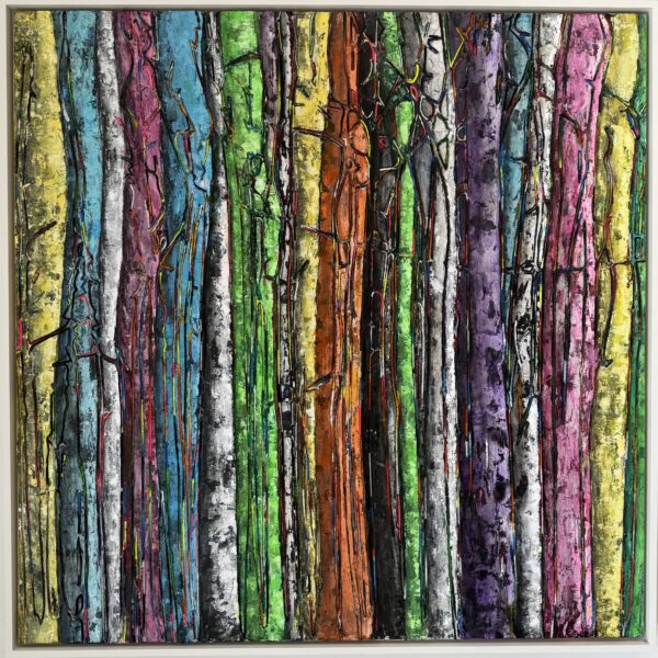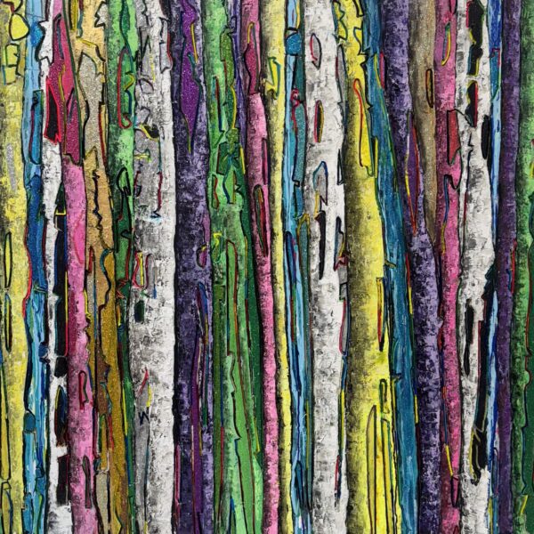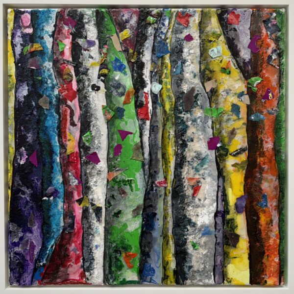 Haleh Mashian with her layered and whimsical tree series, celebrate nature, texture, and exuberance with sculptural depth and color.