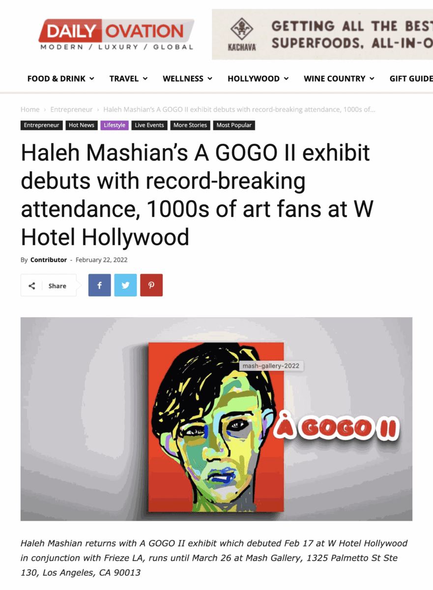 Artist-Entrepreneur Haleh Mashian, the prolific painter and owner of MASH Gallery, returns for her second incredible exhibit at the W Hotel Hollywood in conjunction with Frieze LA.