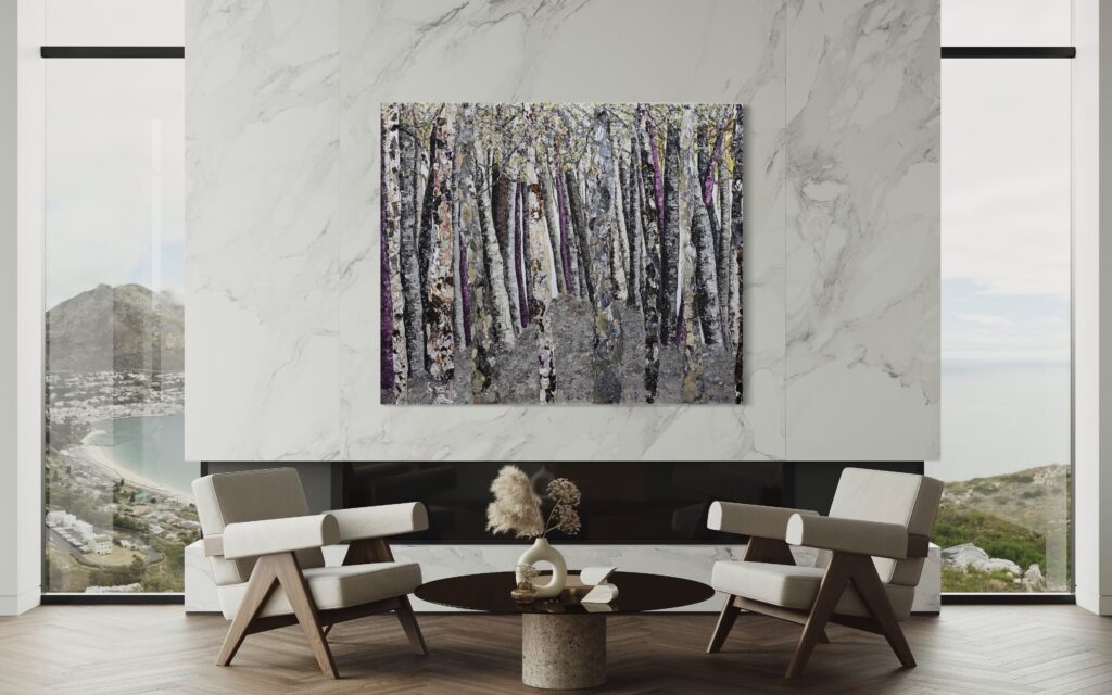 For strong interior design appeal, it’s crucial to balance differing textures and finishes. A piece of art with natural textures introduces contrast to any bland space, even within a neutral color scheme. Sometimes something as simple as painting and refreshing a blank, drab wall sets the stage for a luxurious, grounding piece of art to breathe. This type of neutral layering creates a dynamic space that feels curated, yet livable.
