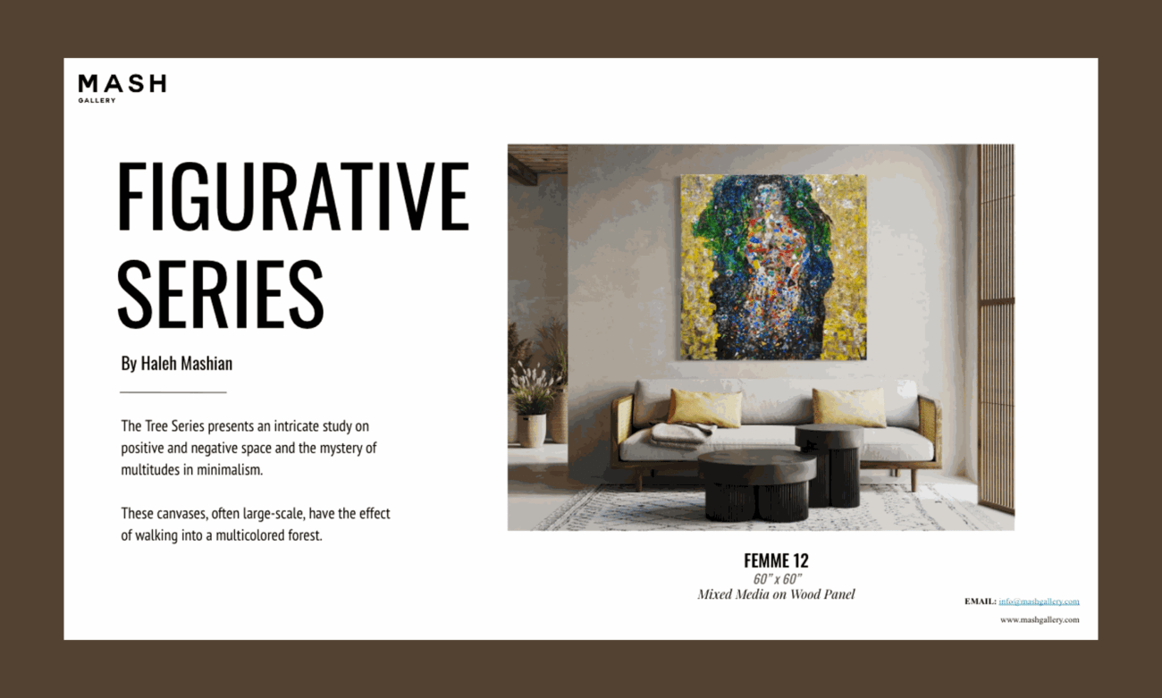 Mash Gallery’s network highlights many artists in all categories. We offer our expertise in placing paintings, drawings, sculptures, prints, and commissioned artwork in a wide variety of mediums and prices. Our clients include private collectors, interior designers, and the hospitality sector.