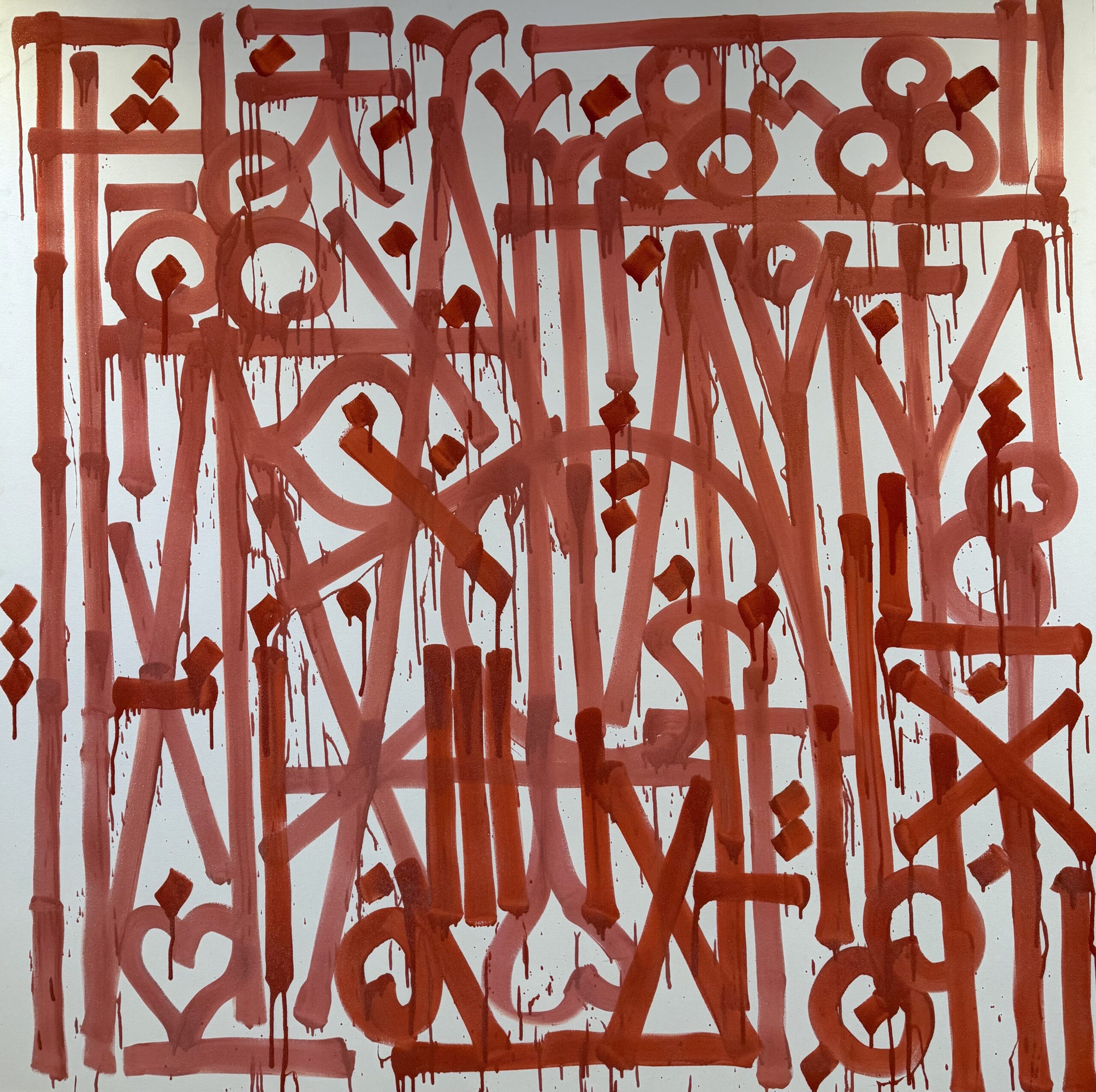 RETNA’s style blends elements from Egyptian hieroglyphics, Hebrew and Arabic calligraphy, Asian brushwork, Gothic blackletter, and street tagging culture.