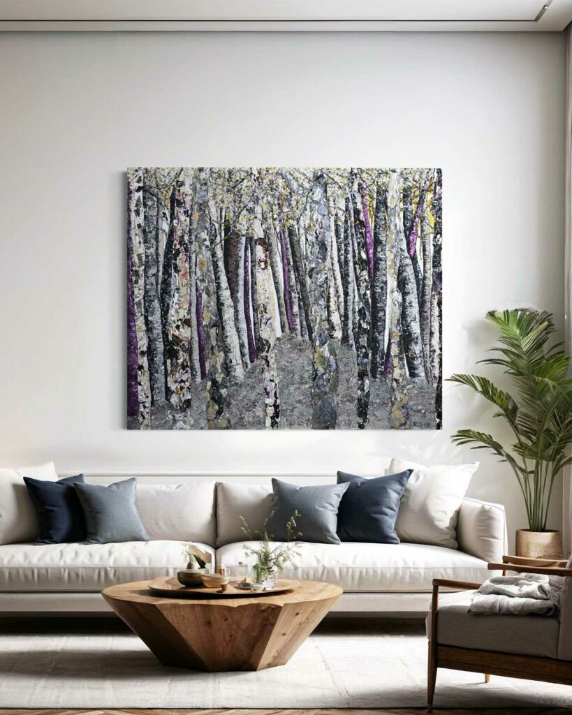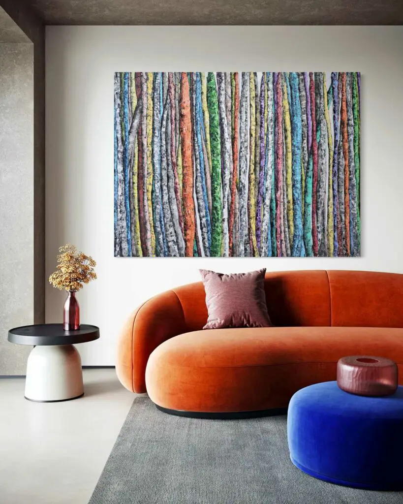 Begin by identifying the dominant colors in your artwork. These hues can serve as the primary palette for your room, influencing everything from wall paint to upholstery. To add depth and interest, pull out secondary and accent colors to use in accessories such as throw pillows, rugs, and decorative objects.